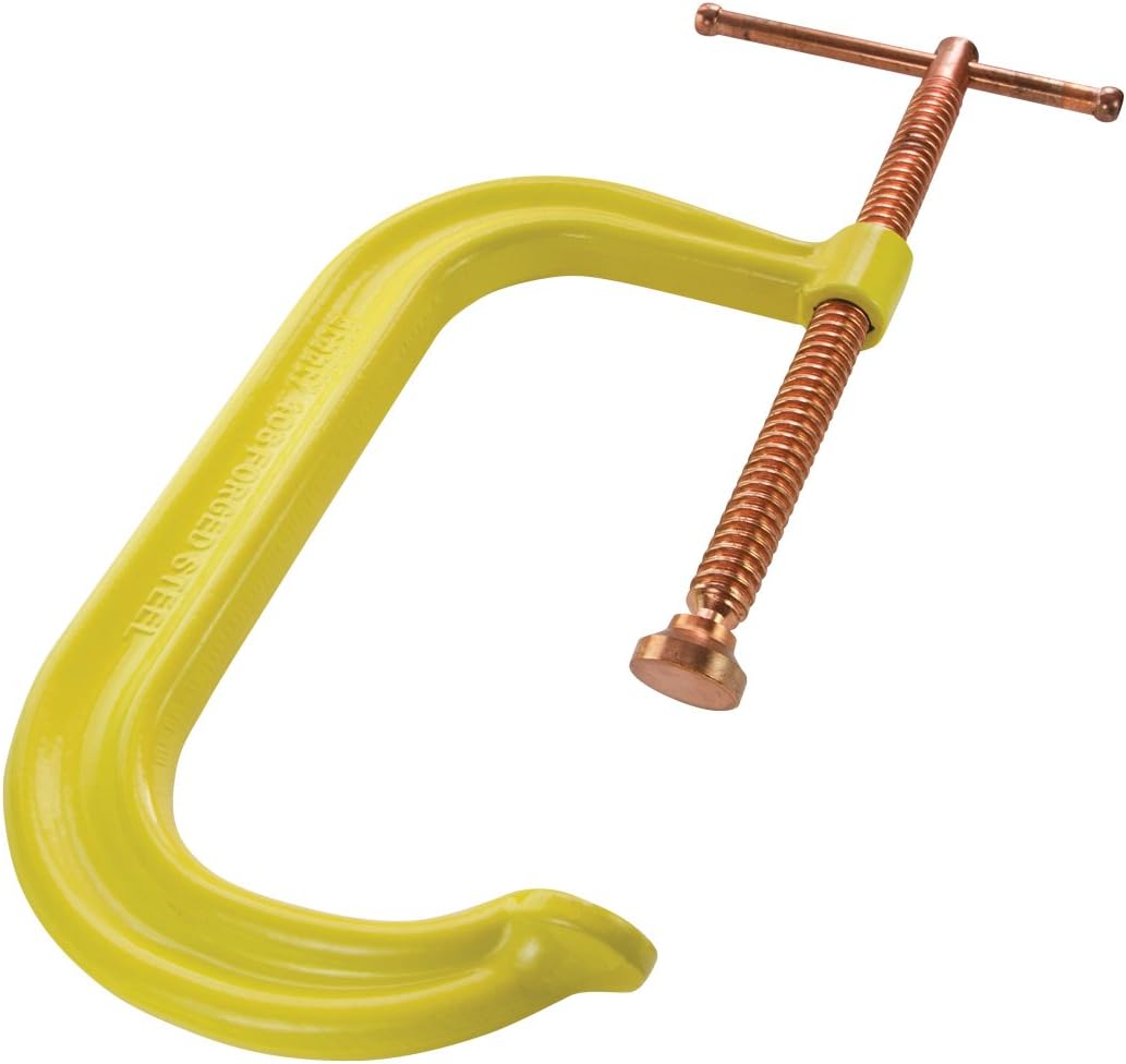 The CDF400CHV series c-clamps have heavy-duty drop-forged, heat-treated frames with a high visibility yellow powder coat finish, the handle, spindle & pressure pad assemblies are copper plated to resist weld spatter. BESSEY. Simply better.